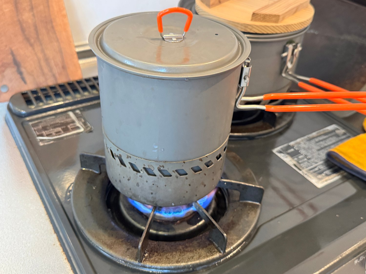 一方、ジェットボイル風鍋もアウトドア用らしく非常に速く、火をつけてからあっという間に沸騰します。果たして、両者の勝負はどうなるのでしょうか。